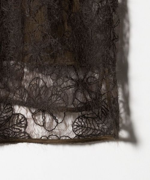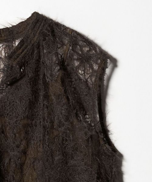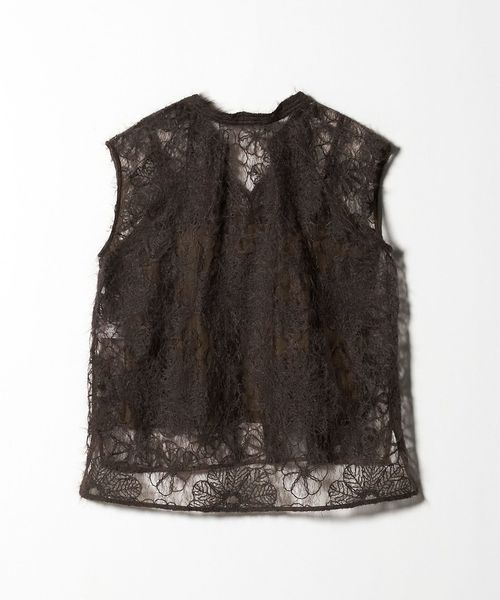 繊細なチュールに起毛糸で描いた花柄刺繍が映える、華やかで上品なノースリーブトップス。