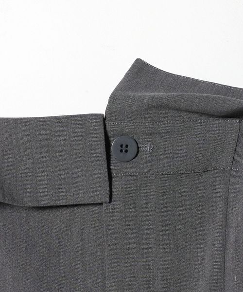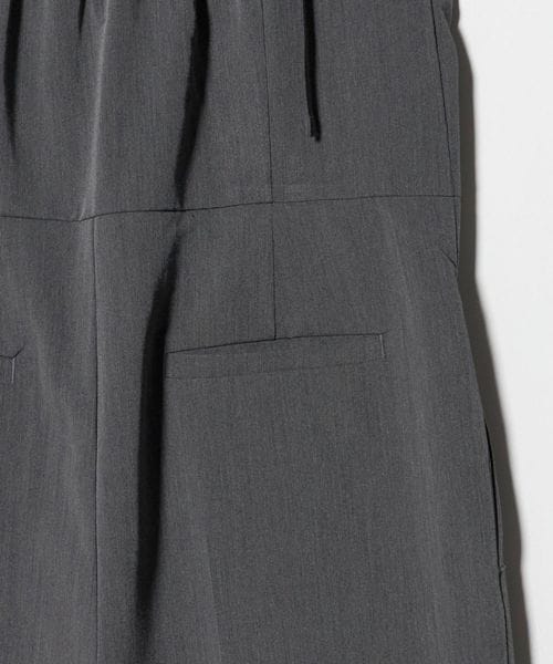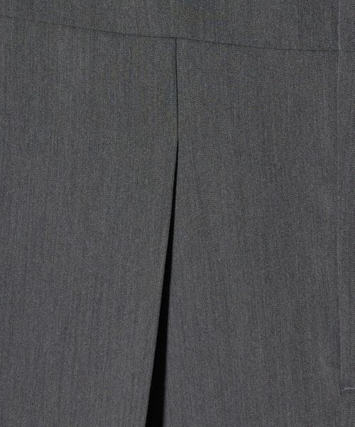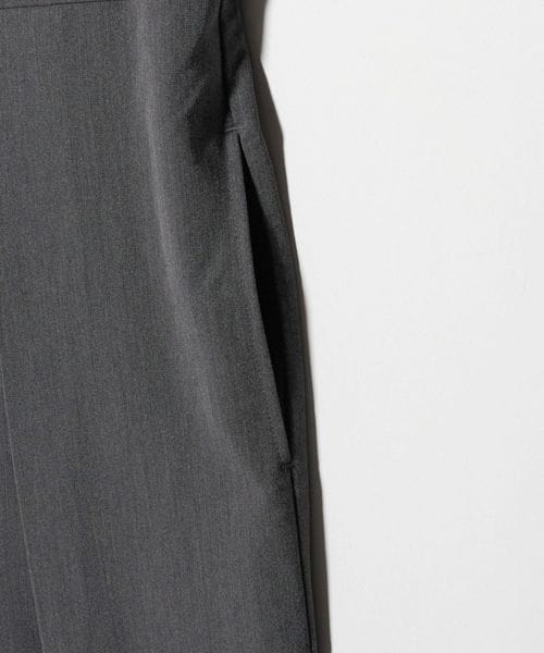 やや高めに設定したウエスト切り替えと、縦ラインを強調するタック入りのシルエットですっきりとした印象に導いてくれます。
