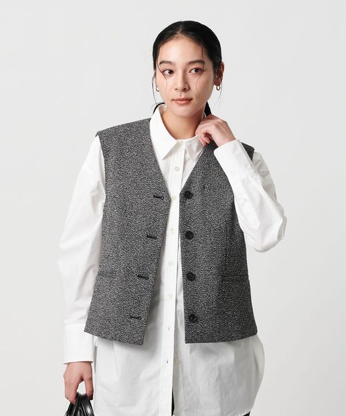 奥行きを感じる表面がポイントの、品の良さ漂うツイード調ベスト。