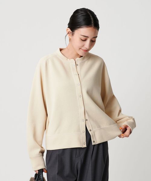 頼れる定番アイテム。カットソー生地のリングボタンカーディガン。
