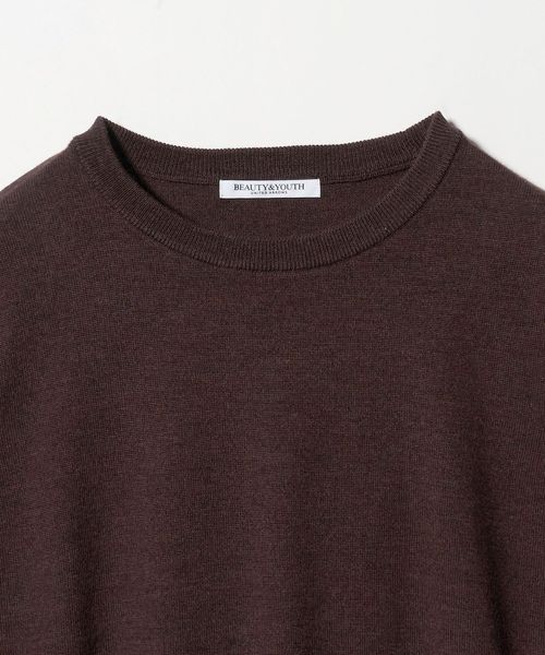起毛感が控えめなウール100%の梳毛ニットで、ロングシーズン着やすい素材。