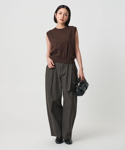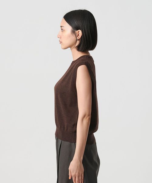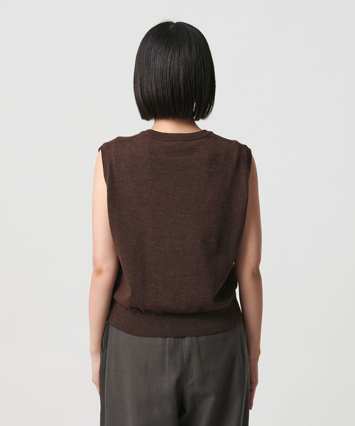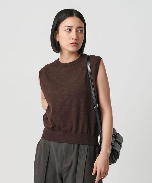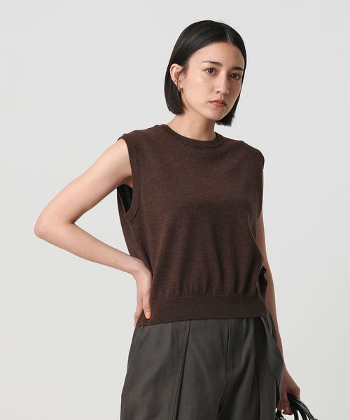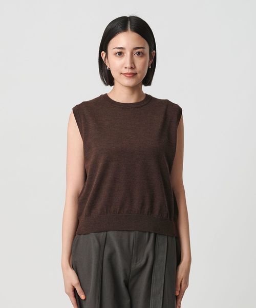 インナーを組み合わせてベストとしてはもちろん、気温の高い日はノースリーブトップスとしても着用いただけます。