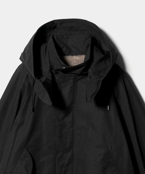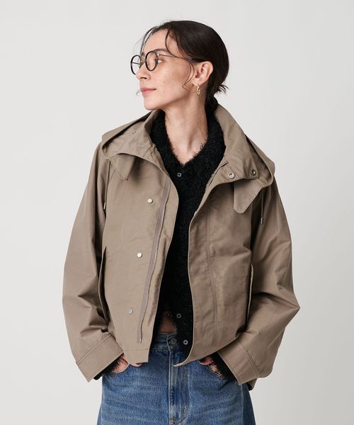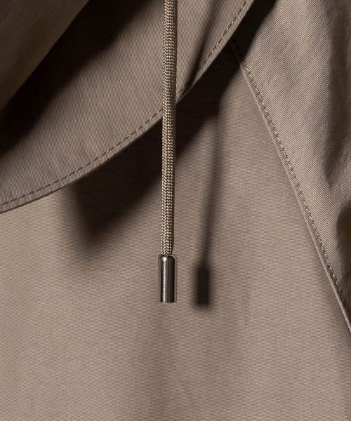 襟元は適度な高さで首元をしっかりとカバーし、取り外しできるフード付きでシーンやコーディネートに合わせてお楽しみいただけます。