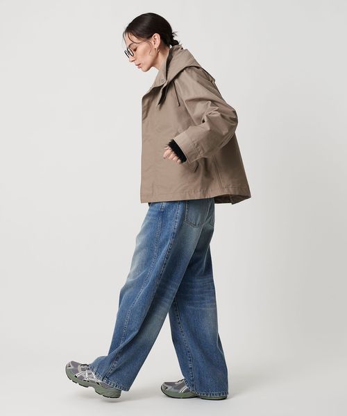 前後差のつく軽めの着丈でパンツはもちろん、スカートやワンピースとも相性良く着られる優秀アウター。
