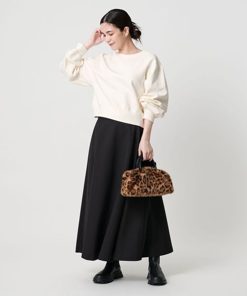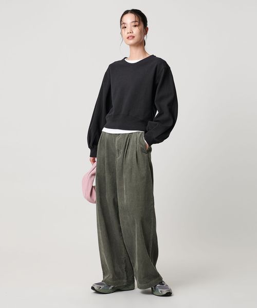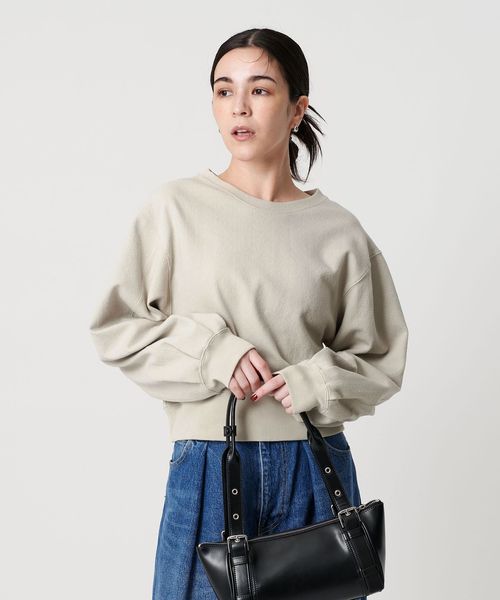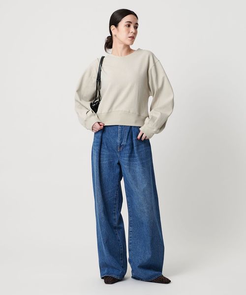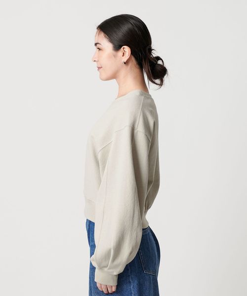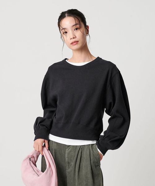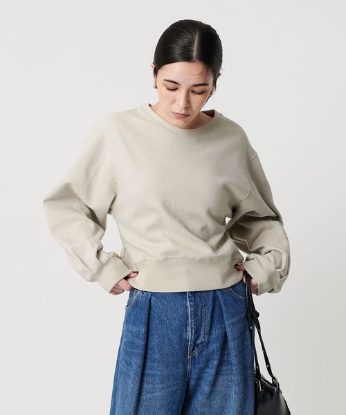 たっぷりとしたボリュームスリーブとショート丈の身頃が旬なバランスで、ワイドパンツやスカートに合わせやすいシルエットに仕上げました。