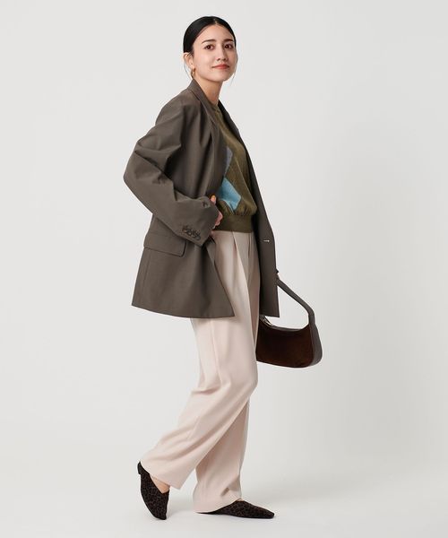セットアップでお作りしているパンツとのコーディネートはもちろん、カーブシルエットやタック入りワイドボトムなど、メンズライクなテイストを取り入れた装いもおすすめです。