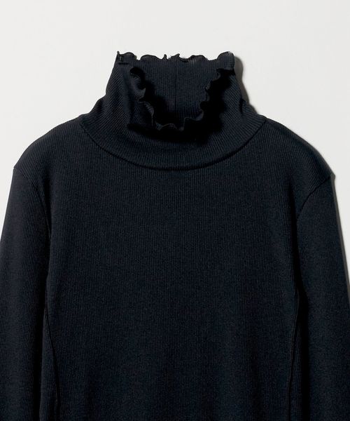 タートルネックとやや長めの袖が、存在感のある秋冬のインナー使いを叶えます。
