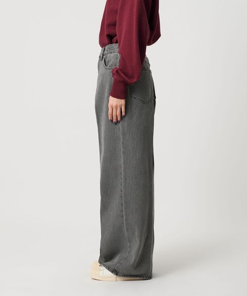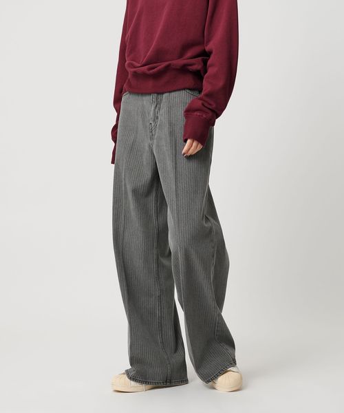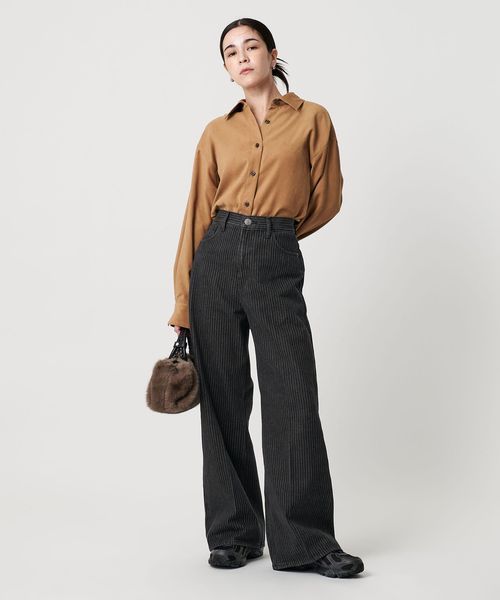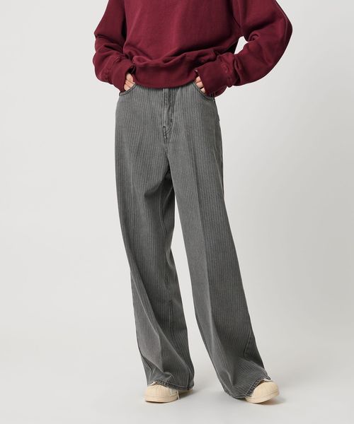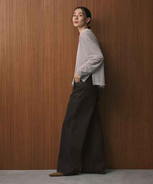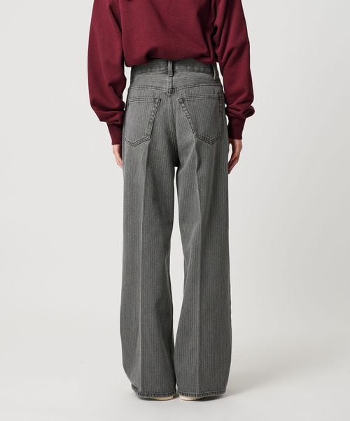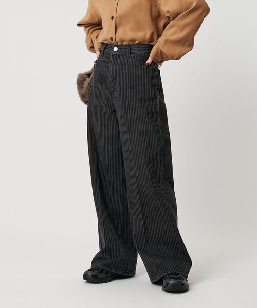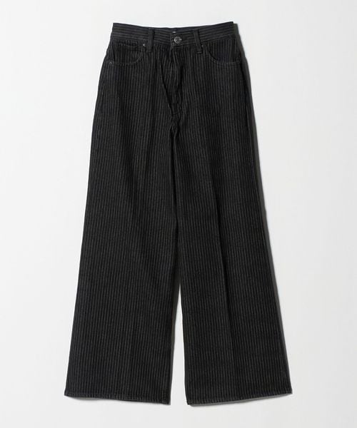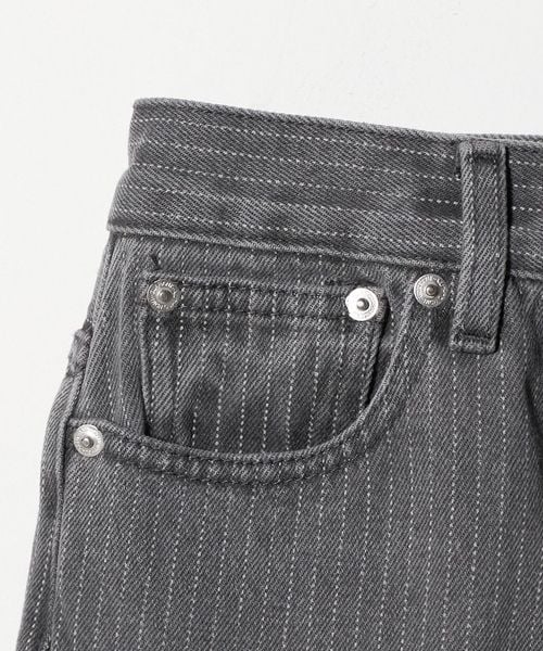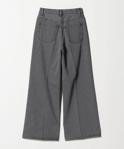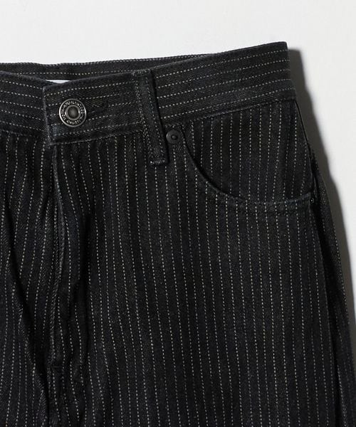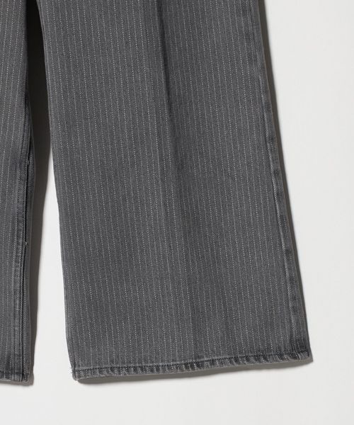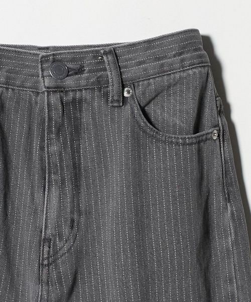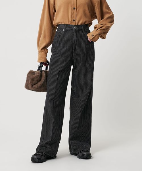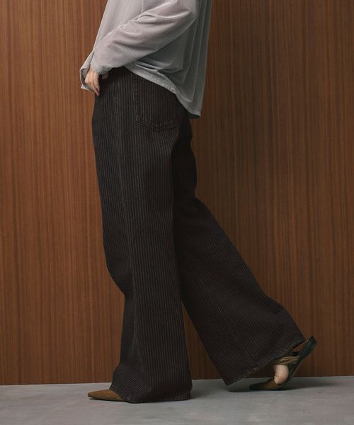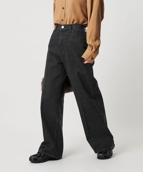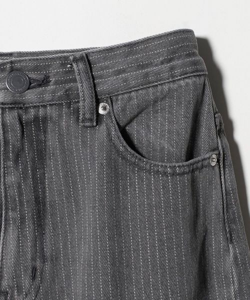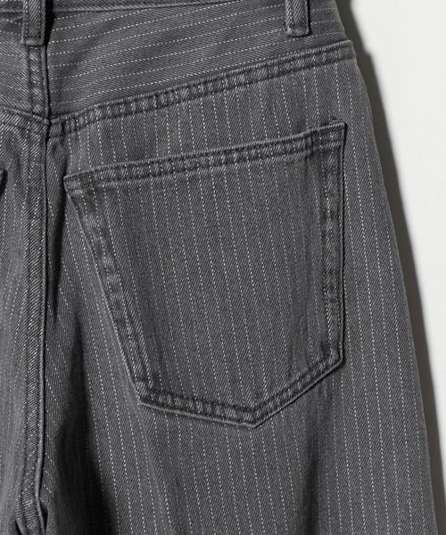 マニッシュなストライプ柄の入ったデニムパンツ。