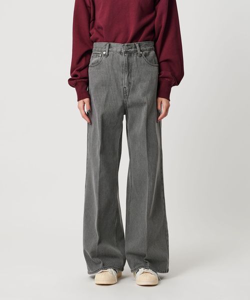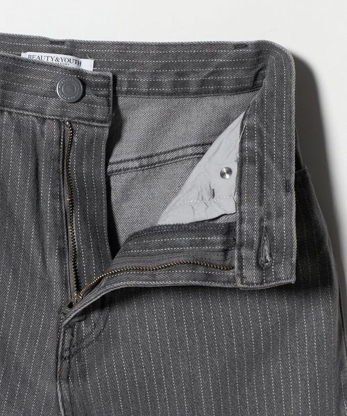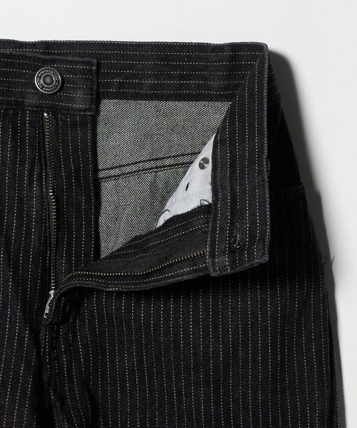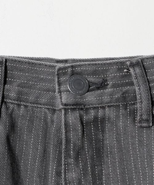 ストライプ状に抜染したブラックデニムにブラックは1ウォッシュ、グレーはブリーチ加工を施して仕上げました。