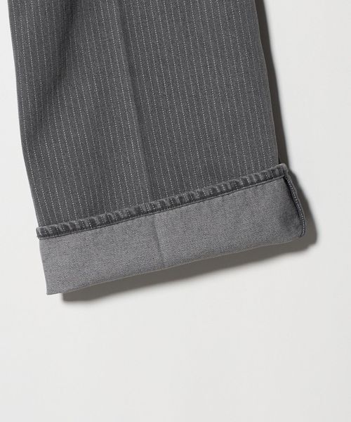 きれいめでスラックスのような感覚ではける、無地のデニムとは一味違った着こなしが楽しめるアイテムです。
