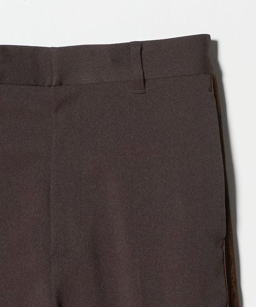 質感の変化が楽しめる同系色のベロアテープを用いたことで、スポーティなラインパンツを落ち着いた雰囲気に仕上げました。