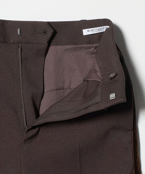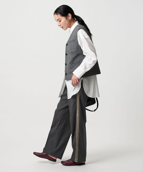フロントはスマートな表情ながら、動きが出るとベロアのラインが覗く遊び心の効いたデザインはさまざまなトップスに合わせやすいアイテムです。