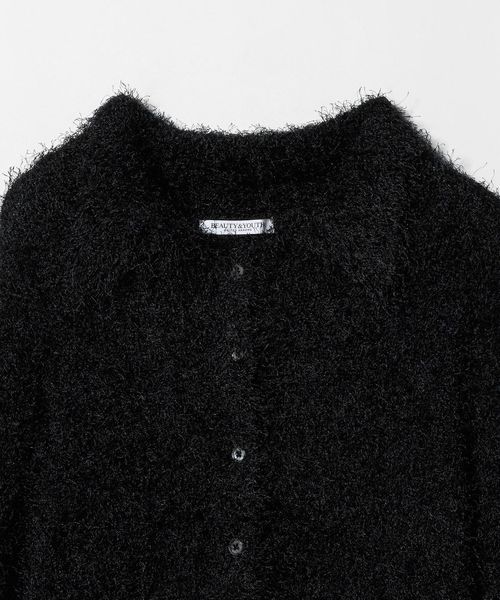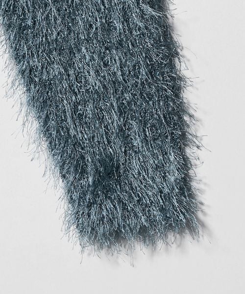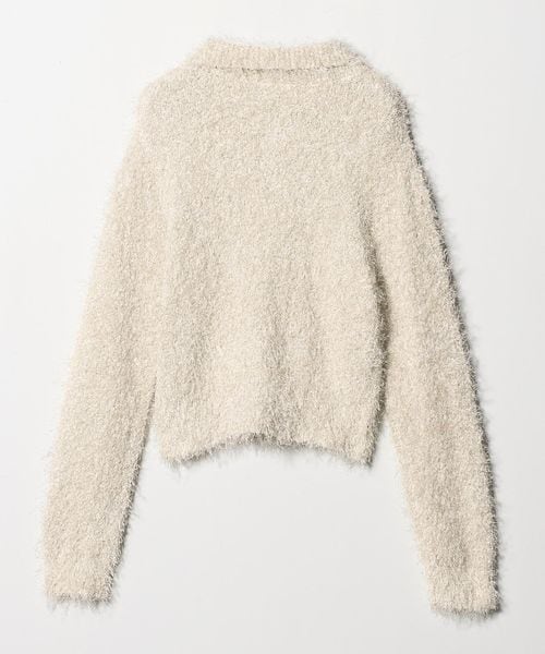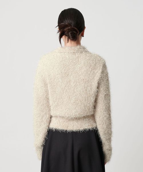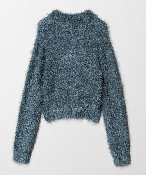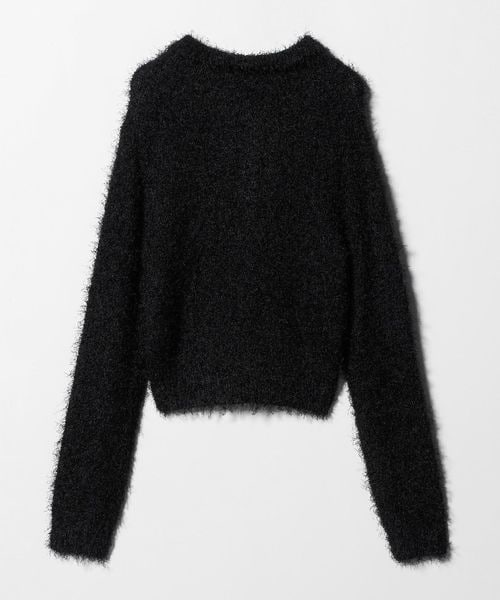 光沢感がポイントになる毛足の長い糸を天竺編みしたニット。