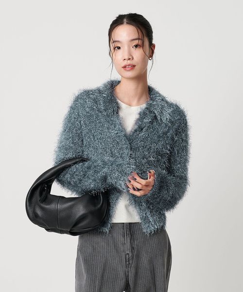シャギーのボリュームはありながらもショート丈のすっきりとしたサイズ感でトレンドムードが漂います。