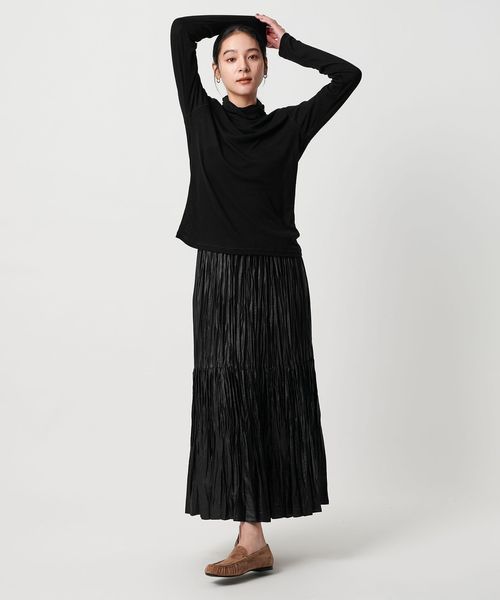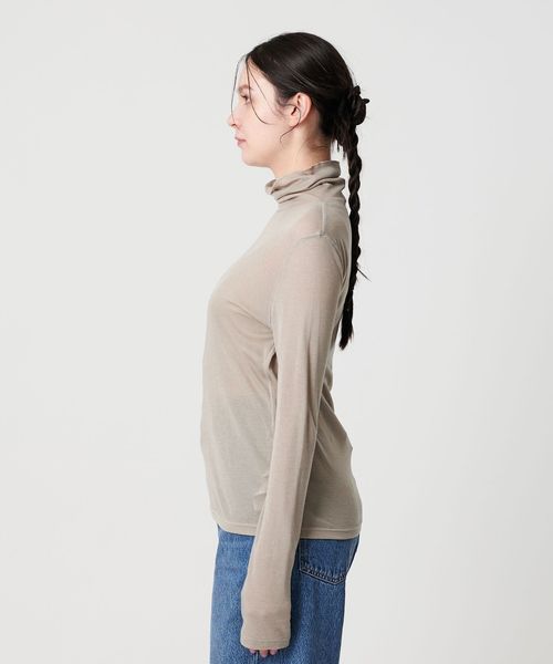 ほのかにシアー感があり重ね着してももたつきにくい薄手の素材とほどよいフィット感のシルエットで、レイヤードインナーとして活躍します。