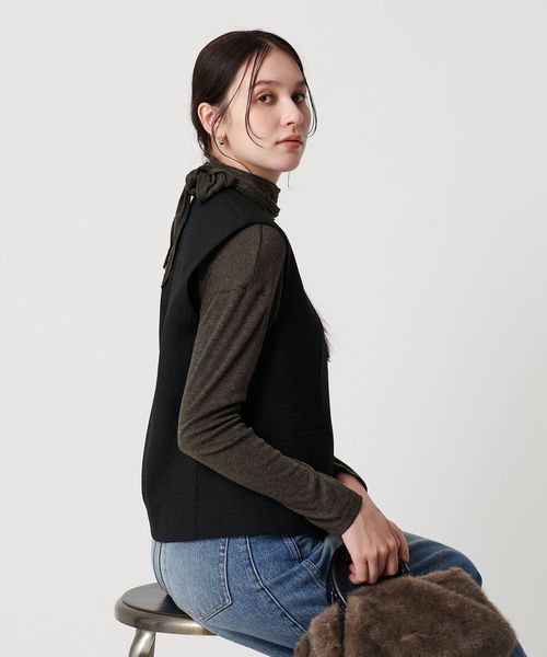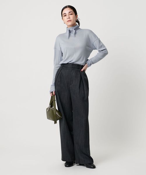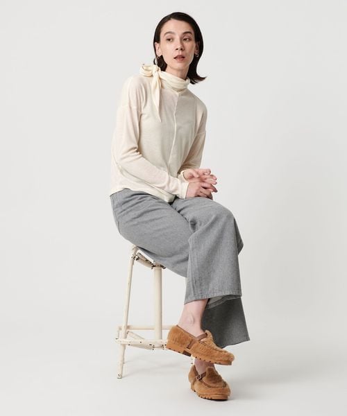 ドロップショルダーやセンターシームがさりげないアクセントとなり、タイト過ぎないシルエットで一枚着でも着やすいサイズ感。