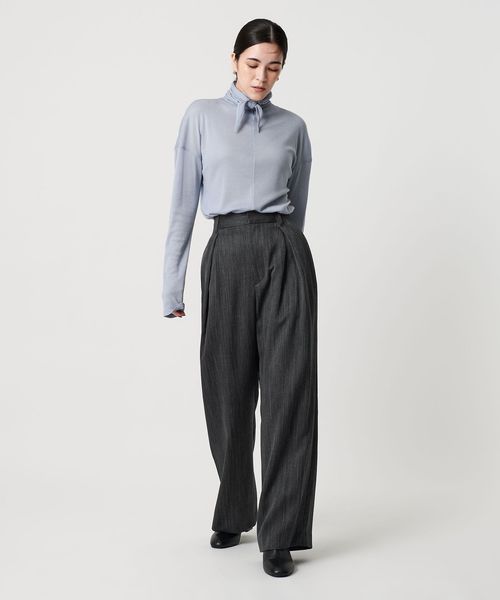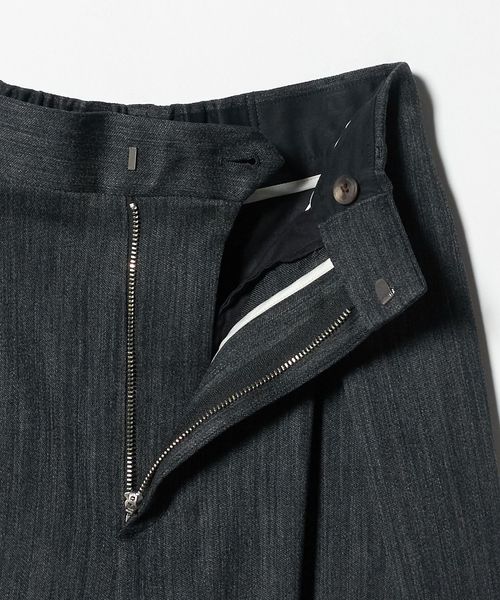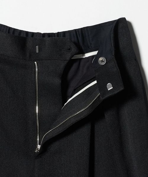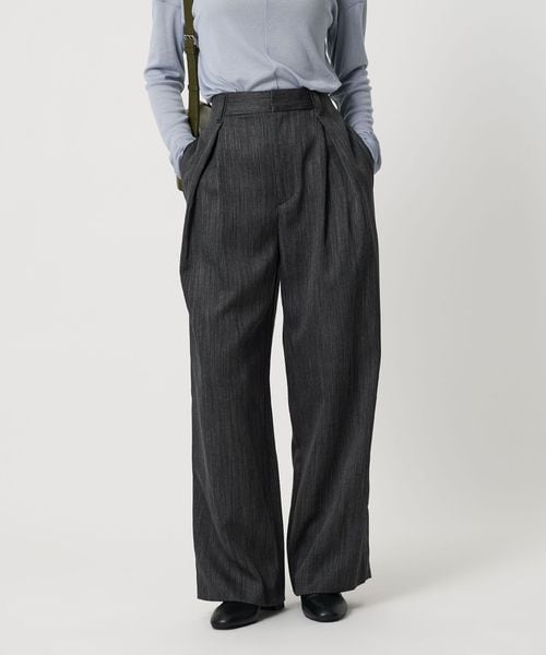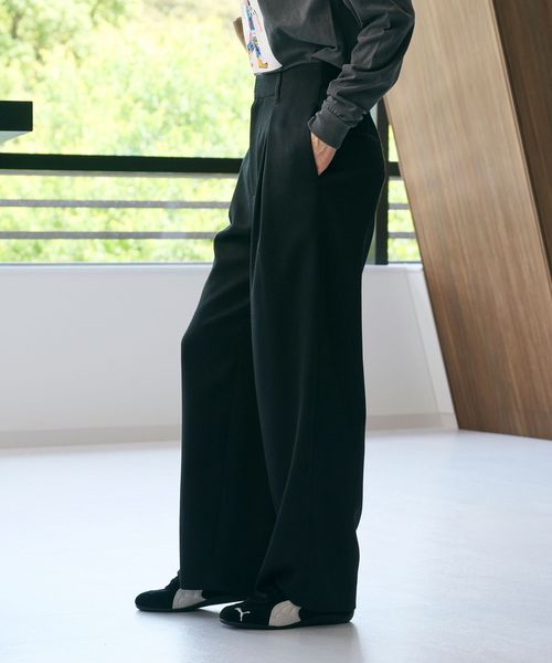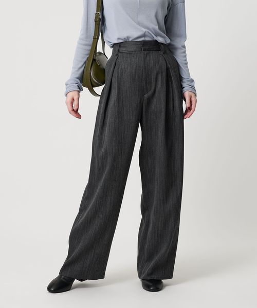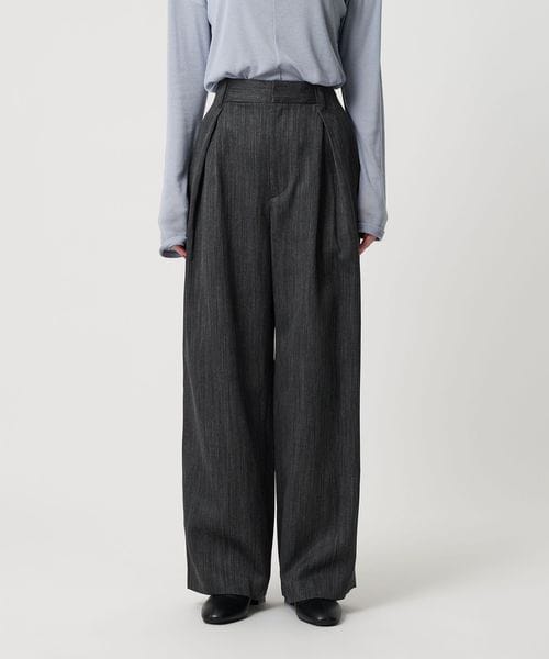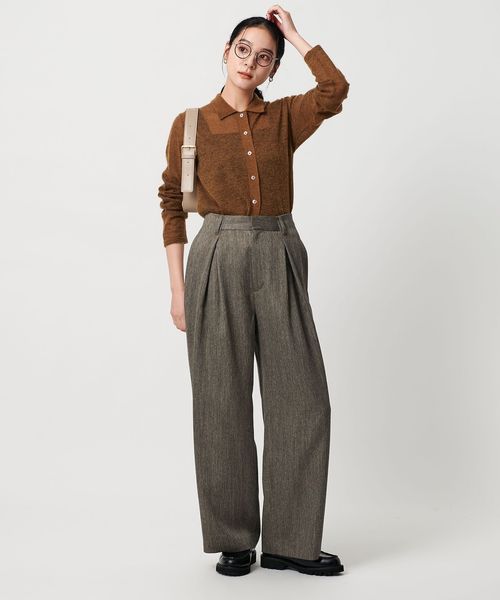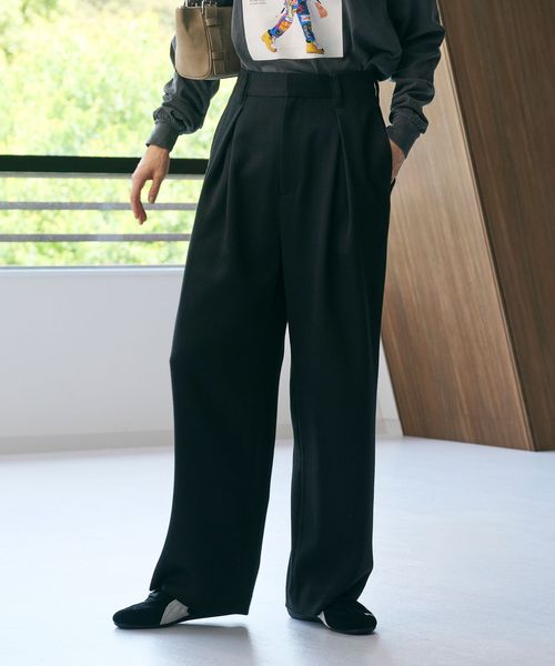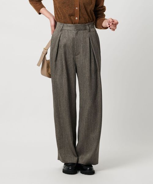 ウールのツイードのような奥行きのある素材が季節感を薫らせるワイドパンツ。