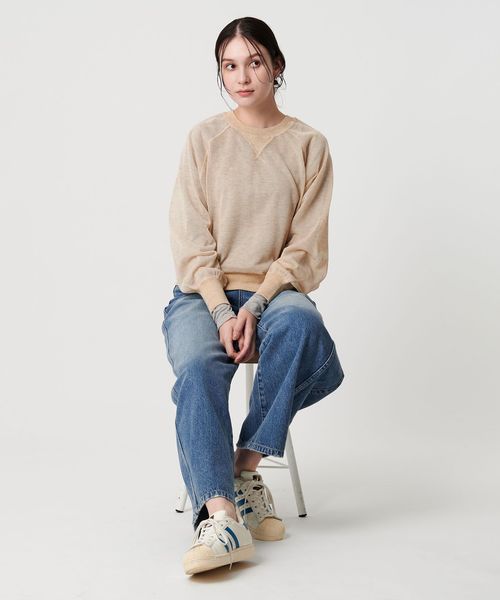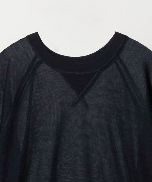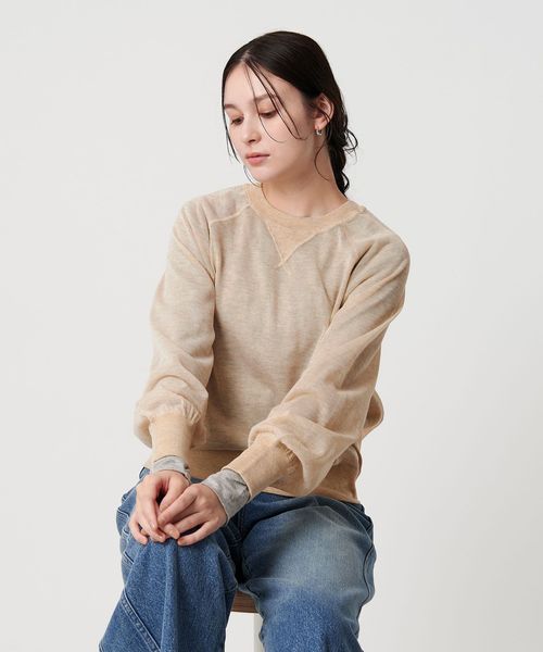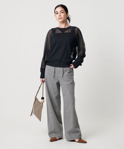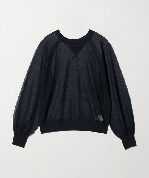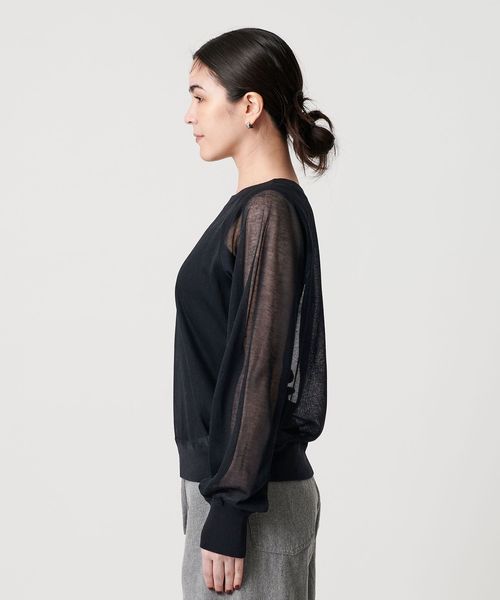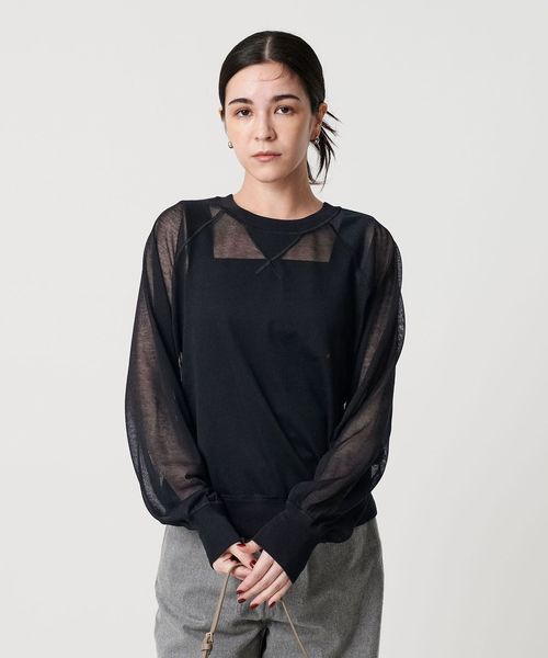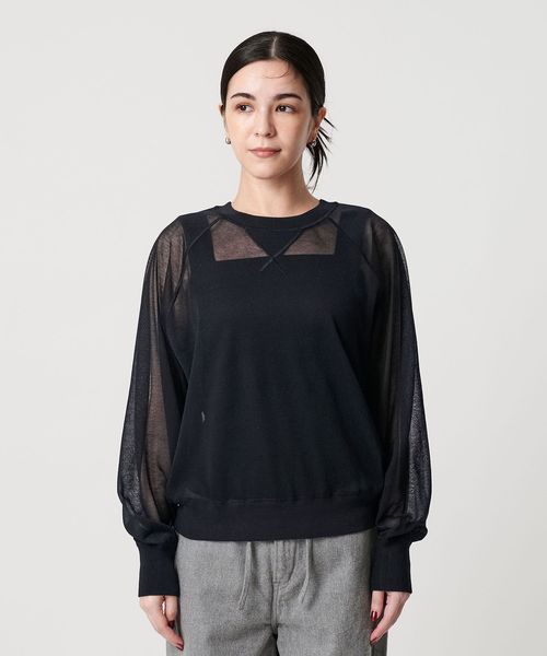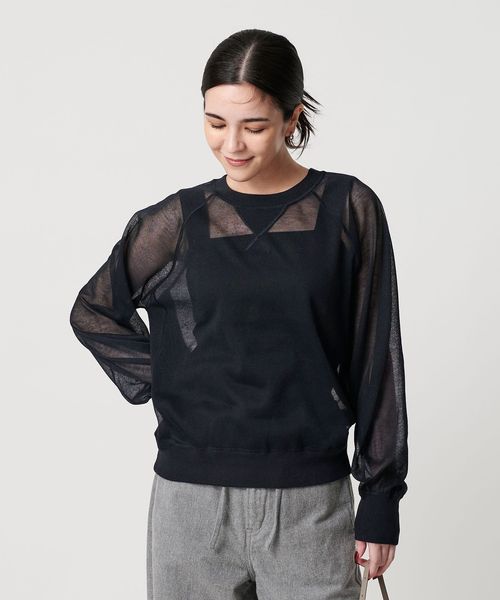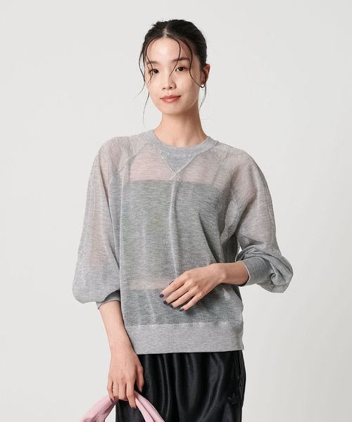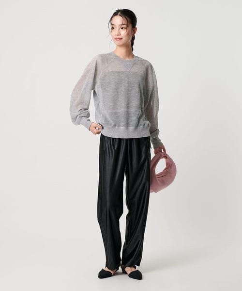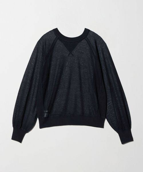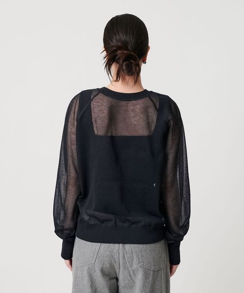 透け感で魅せる、スウェットディテールのシアーニット