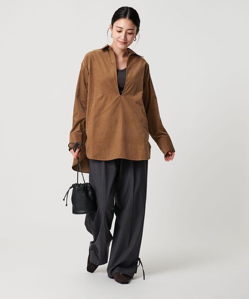 インナーは抜け感の出るキャミソール、クルーネックのTシャツやタートルネックなど気温に応じてさまざまなアイテムと組み合わせていただけます。