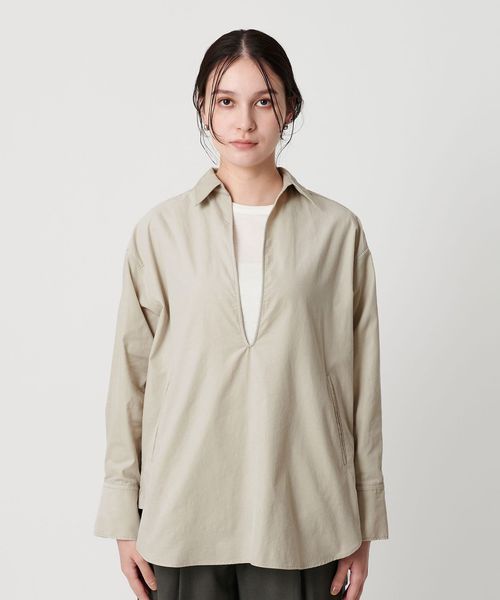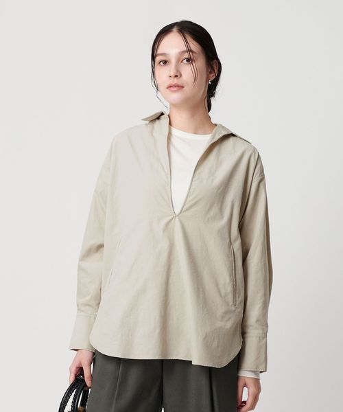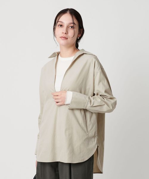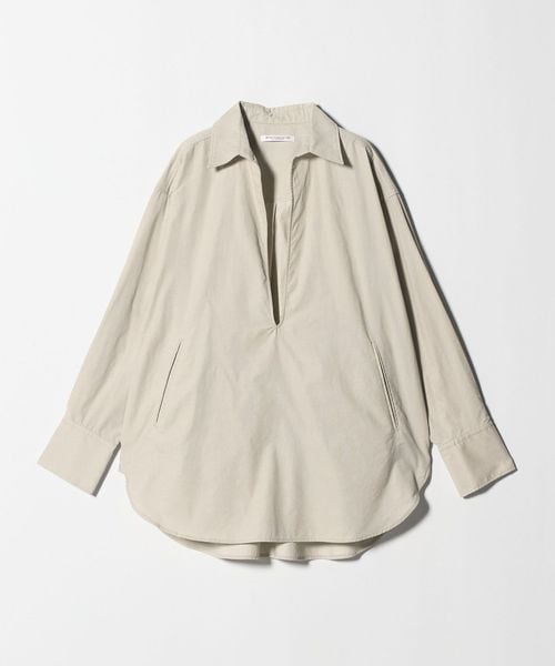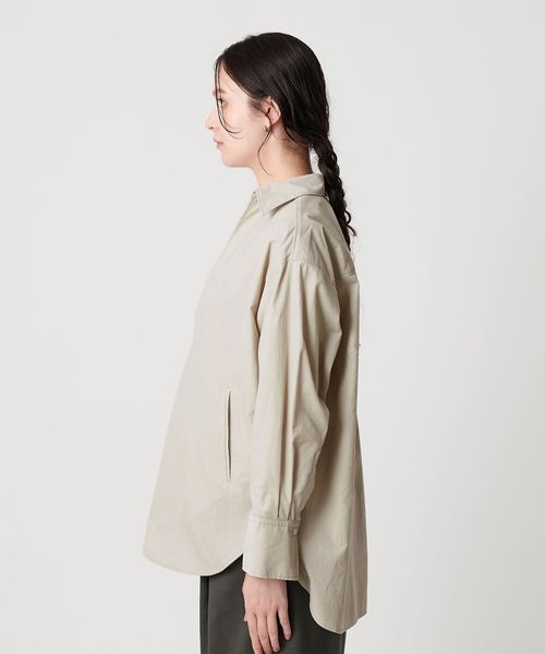 ヒップラインまで隠れるオーバーサイズなシルエットながら、裾をカーブさせてすっきりとしたバランスに仕上げました。
