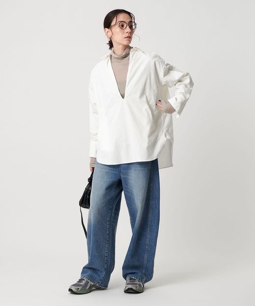 カジュアルなデニムからツイル生地のきれいめなワイドパンツまで幅広く活躍する一着。