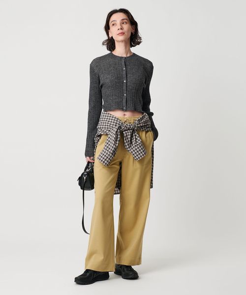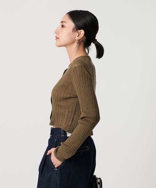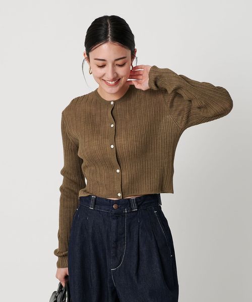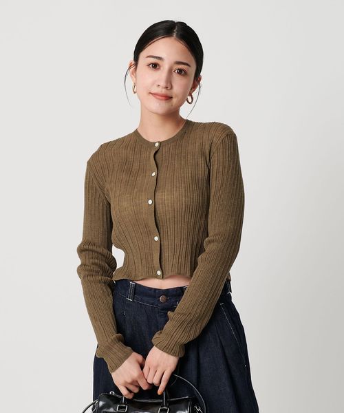 ランダムリブの表情がこなれた印象を与えるショート丈のカーディガン。