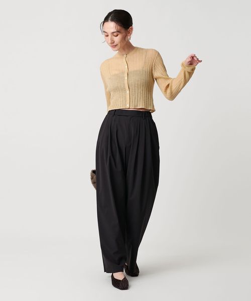 コンパクトなシルエットはワイドパンツと相性抜群。
