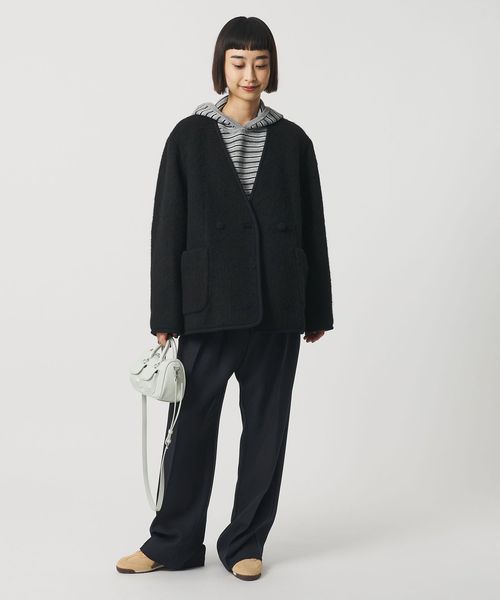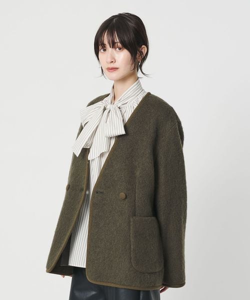 カジュアルな装いにぴったりなシャギーノーカラージャケット