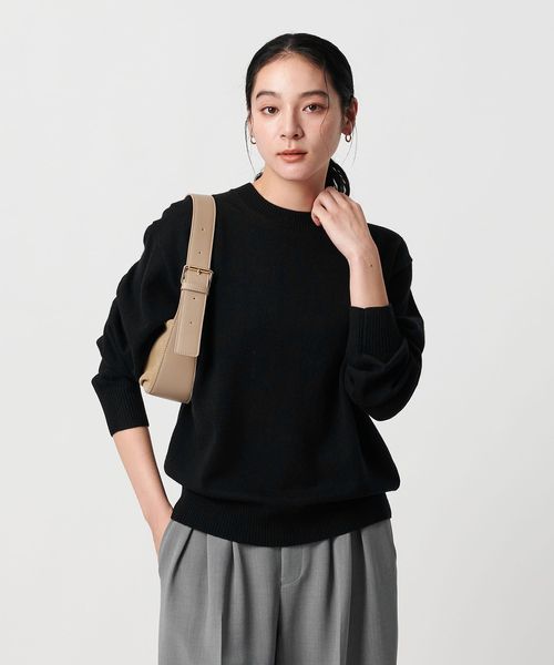 シンプルなデザインとカシミヤブレンドのやわらかな素材感が人気のニットは、着回し力抜群で幅広いシーンで活躍します。