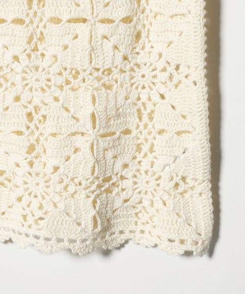 繊細な編み目から透ける肌が、柔らかな陰影をもたらしながらヴィンテージライクなムードを引き立て、抜け感のあるスタイルを演出します。