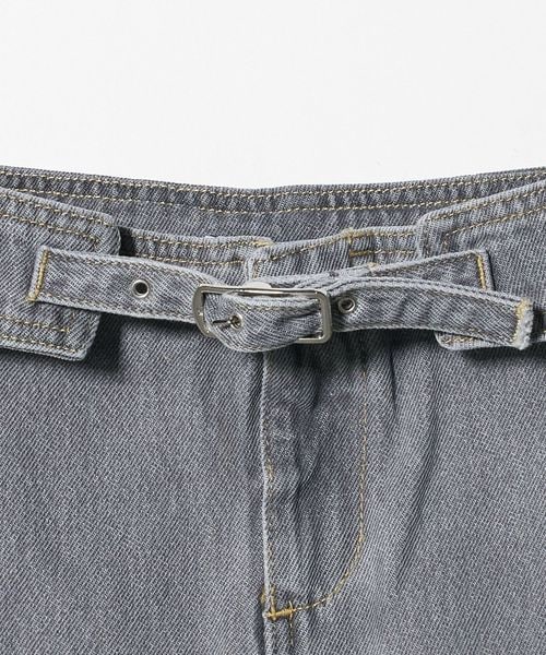ベルトディテールを活かせる短めの着丈のトップスが好相性。