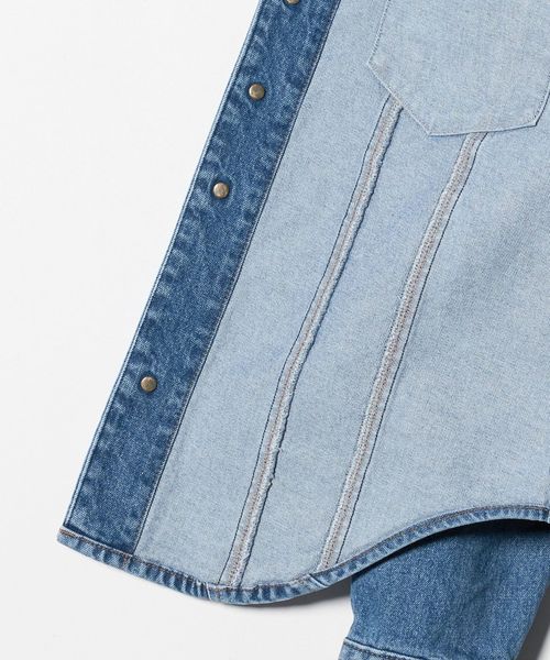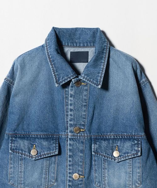 ややゆとりのあるシルエットに、ヴィンテージ感のある色落ち具合やランダムなボタン配置でこなれた雰囲気に仕上げられています。