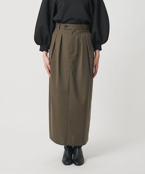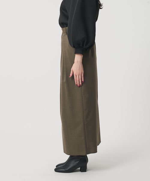 毛ブレンド タックロングスカート 防シワ ウォッシャブル