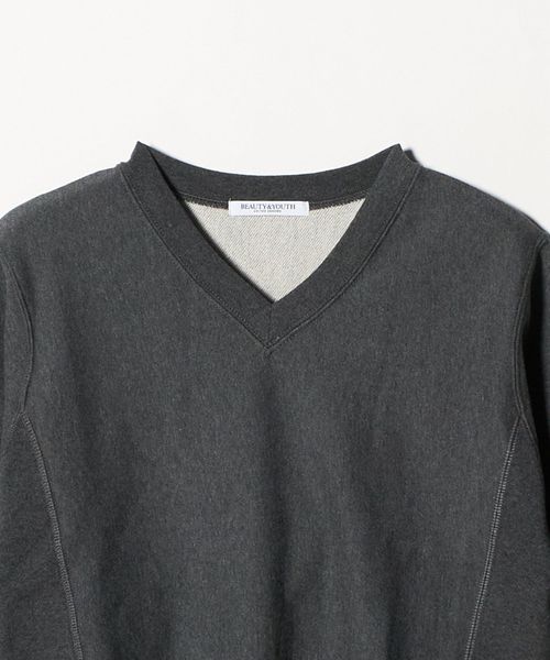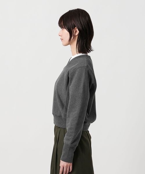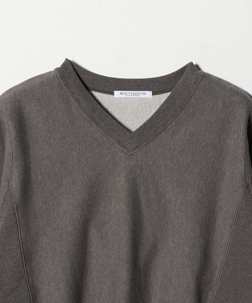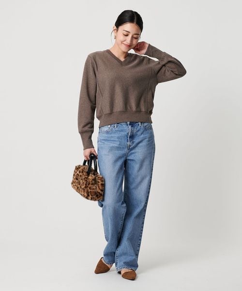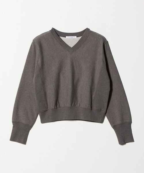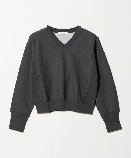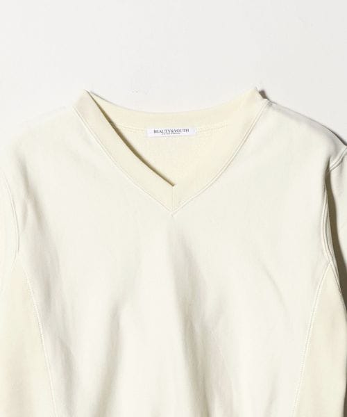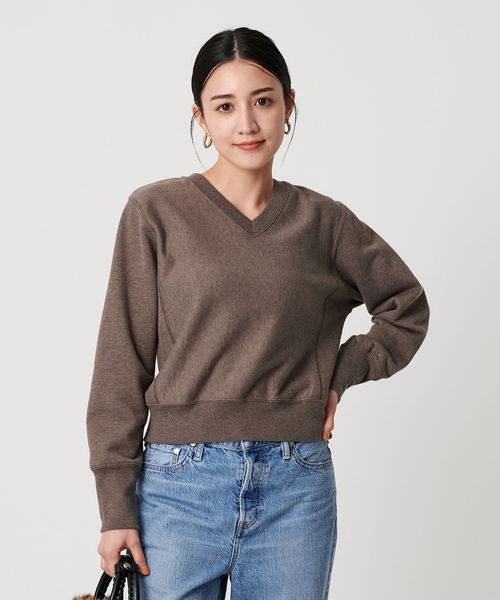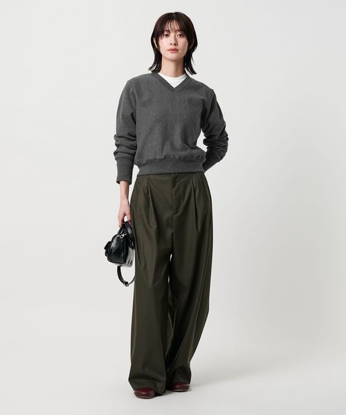 きれいめにも着やすいVネックニット感覚のスウェットは、1枚ですっきりと見せたりTシャツのレイヤードでカジュアル感をプラスしたりとアレンジが効くアイテム。