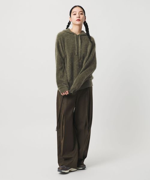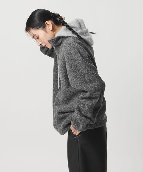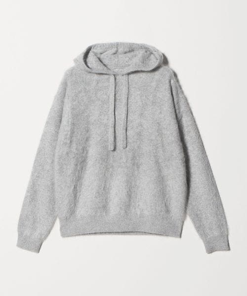 カジュアルなフーディを大人ムードに仕上げたニットプルオーバー