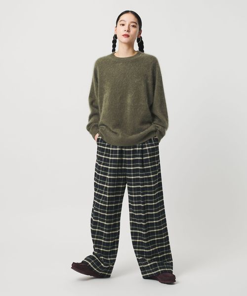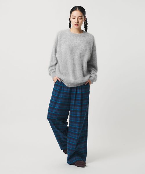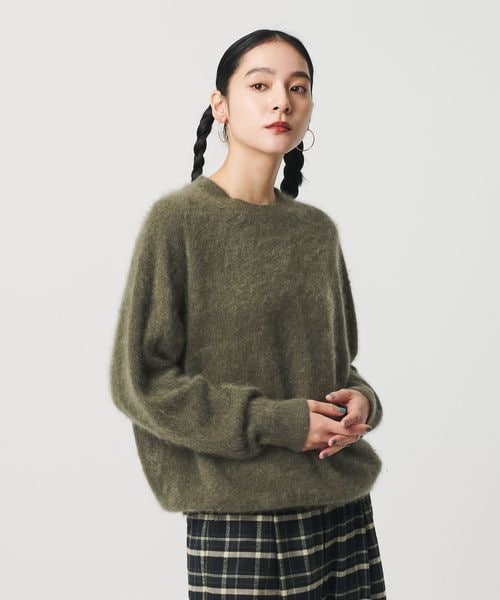 繊細なカシミヤの糸を使用し編地に毛足を出す加工を施すことで、よりふんわりとしたエアリーなシャギー感と滑らかな肌触りに仕上げています。