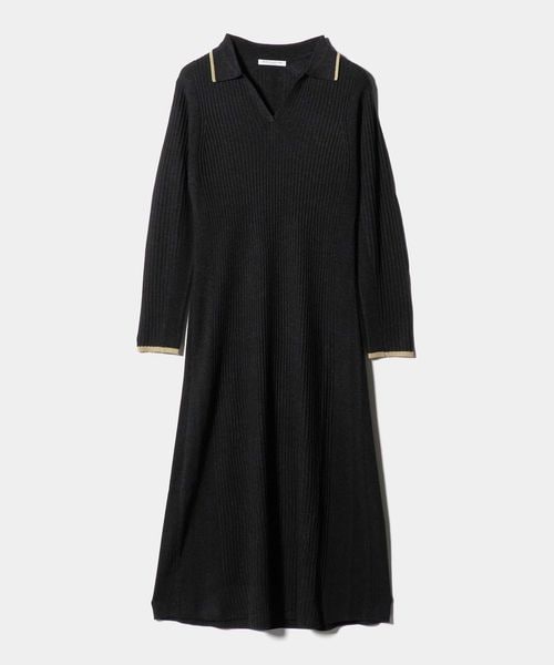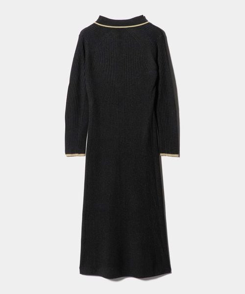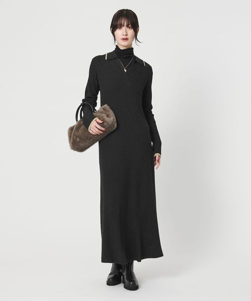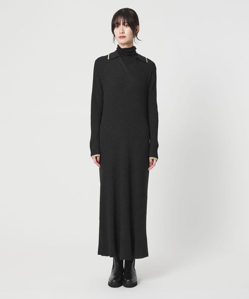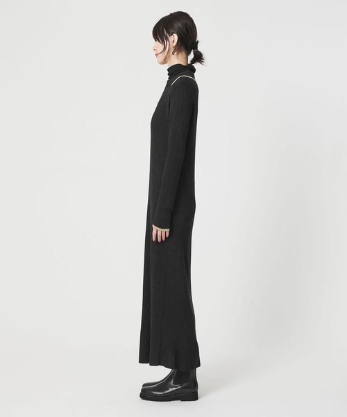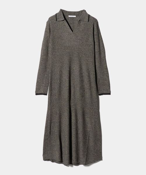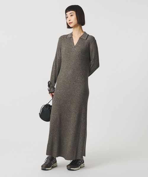 ウールポリエステルブレンド メランジ リブニットワンピース