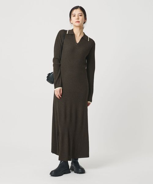 きれいめとカジュアルいいとこ取りのリブニットワンピース