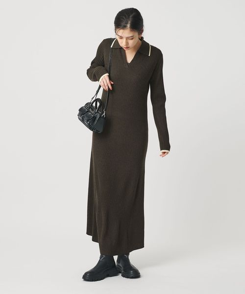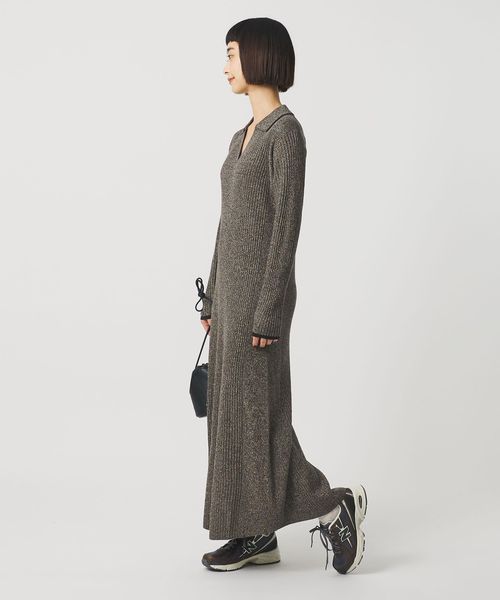 メランジ感や襟付きのディテールなど、こなれた雰囲気が漂う一枚で映えるワンピースです。