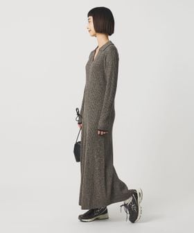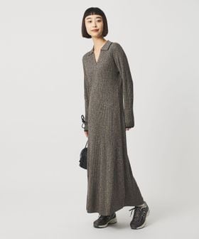 ウールポリエステルブレンド メランジ リブニットワンピース