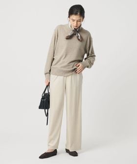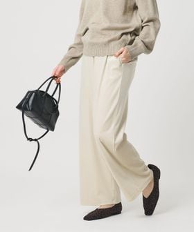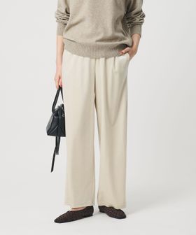体のラインを拾いにくいワイドシルエットながら、しなやかな素材感と太過ぎないレッグラインですっきりとした印象に仕上げました。