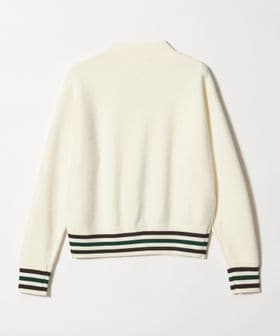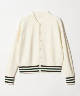 配色リブのデザインが目を引くのスタジアムジャンパー型ニットカーディガン。