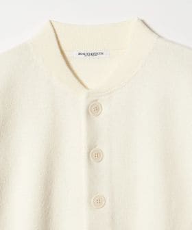 アウターライクな太さのある首元のリブや、大きめのボタンがアクセント。