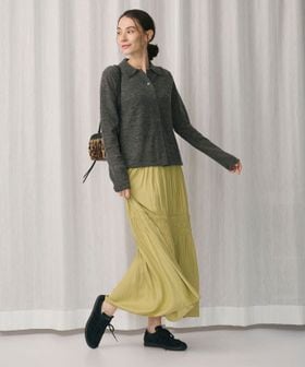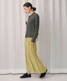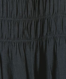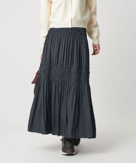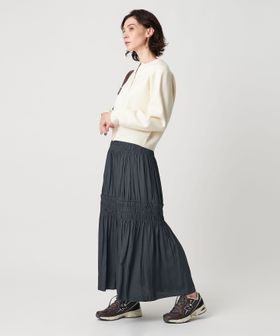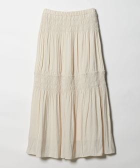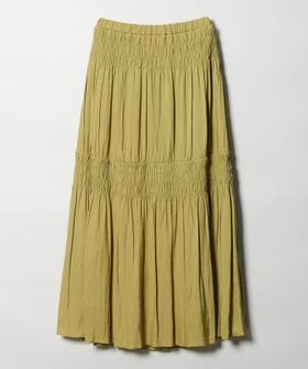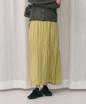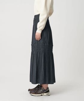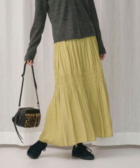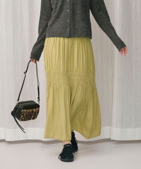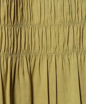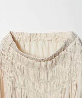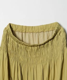 幅広のシャーリングが華やかなアクセントを添えるフレアスカート