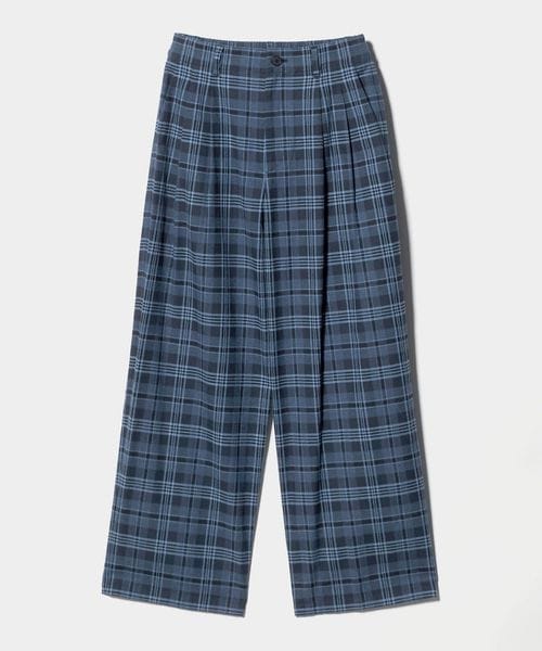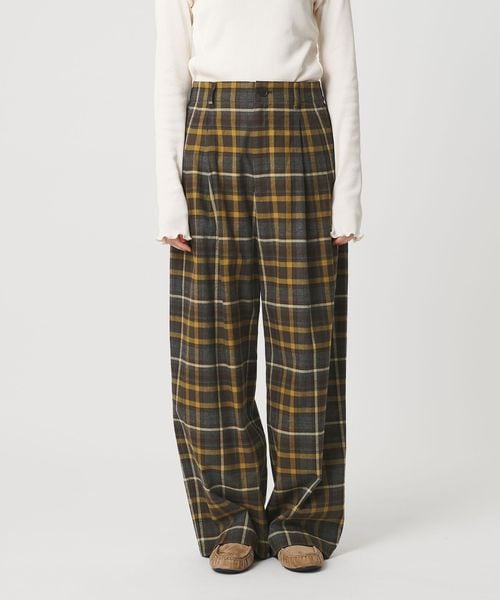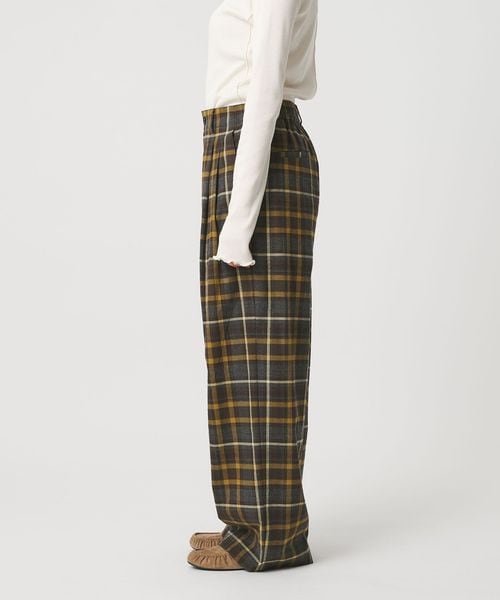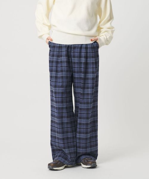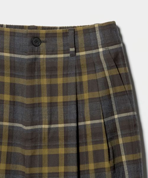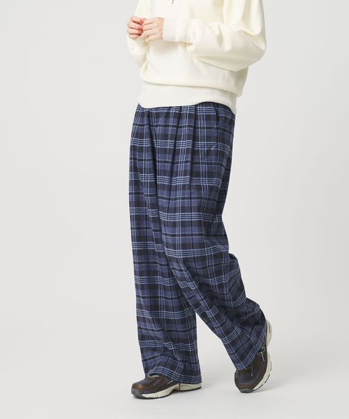 オリジナルで柄を組んだ起毛感が特徴のネルチェックワイドパンツ。
