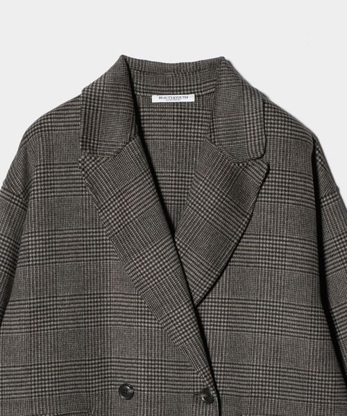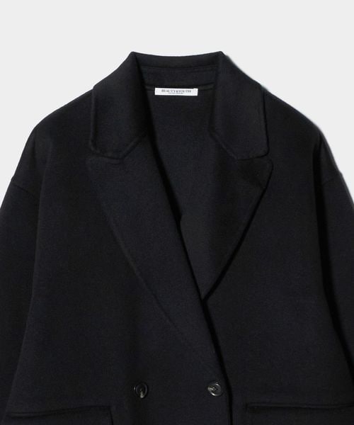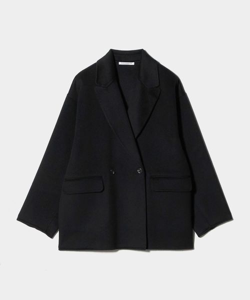 クラシカルなダブルブレスト仕様とかっちりし過ぎない大きめの襟がポイント。