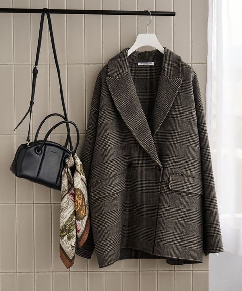 クラシカルなダブルブレスト仕様とかっちりし過ぎない大きめの襟がポイント。
