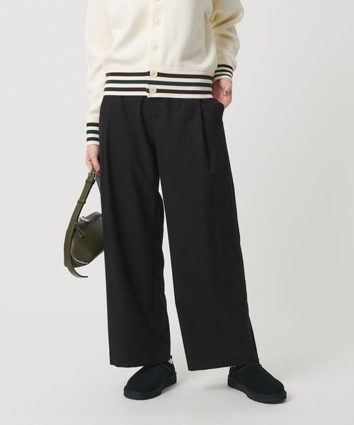 着こなしにニュアンスが加わるさりげないストライプ柄のワイドパンツ。