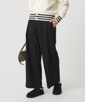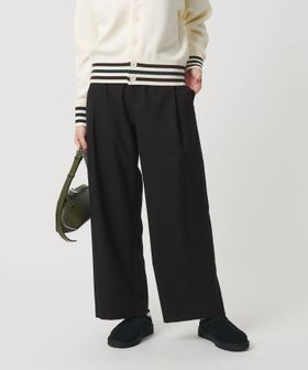 やわらかくドレープ性のある素材を用いて、マニッシュなストライプパンツに女性らしさをプラスしました。
