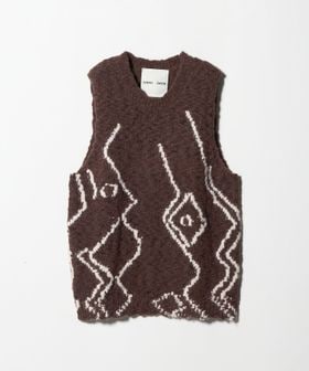 アルパカとウールをブレンドしたやわらかな風合いと柄が印象的なニットベスト。